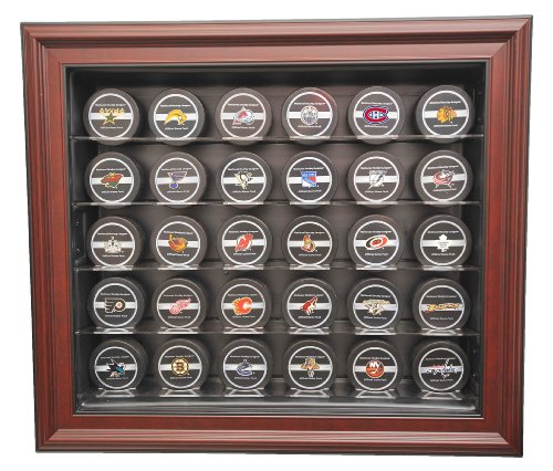 [ See More!! ... NHL Caseworks 30 Puck Cabinet Style Display Case, Mahogany ]